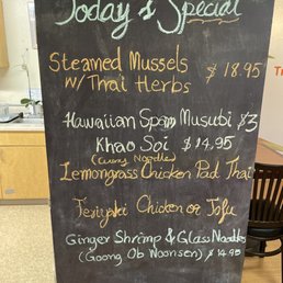 We eat here very often. The owners are so friendly and the food is delicious! We just had family in town and needed a place for 13 of us. I reached out to the restaurant the day before to arrange a time and reserve a table. We were also able to put in our food order in that morning. Everyone loved the food. We got the chicken wings, chicken teriyaki, tofu teriyaki, Thai sausage, yellow chicken curry, chicken satay, crab rangoon, lemongrass chicken pad Thai, Tom Kha soup and Pad Kee Mao. Be sure to end your meal with the fried bananas with chocolate sauce! Street parking available. Take out available. I often see delivery drivers picking up orders(they must participate in Uber eats or Door Dash).